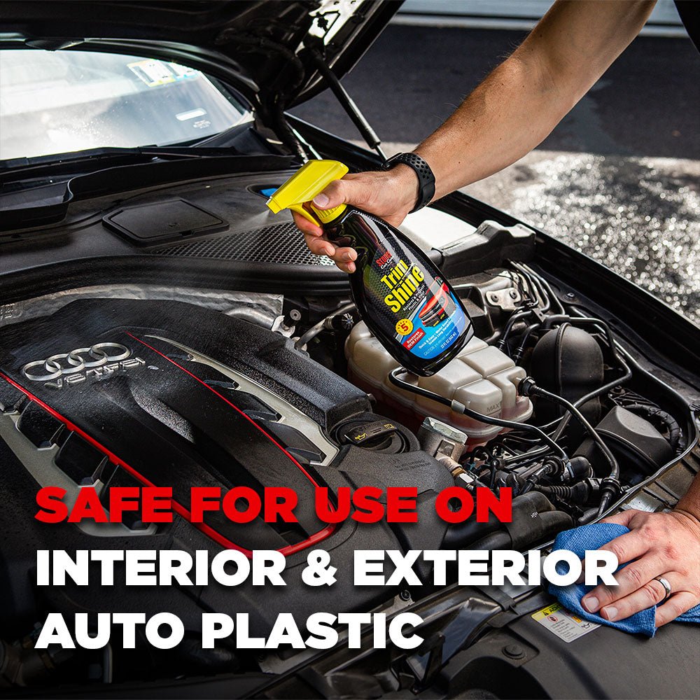 Trim Shine helps provide a long-lasting shine with no wiping required. Simply spray on cladding, tires, bumpers, tonneau covers, convertible tops, dashboards, armrests, steering columns, and more.