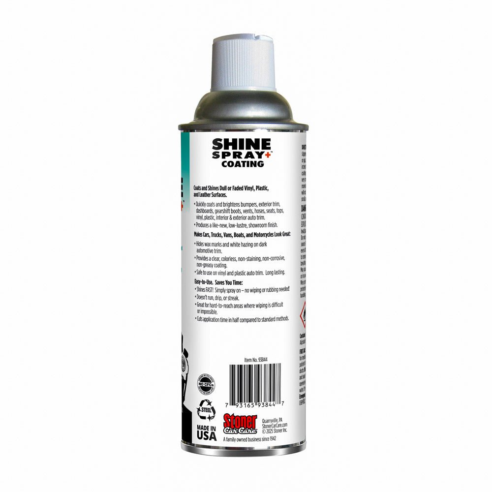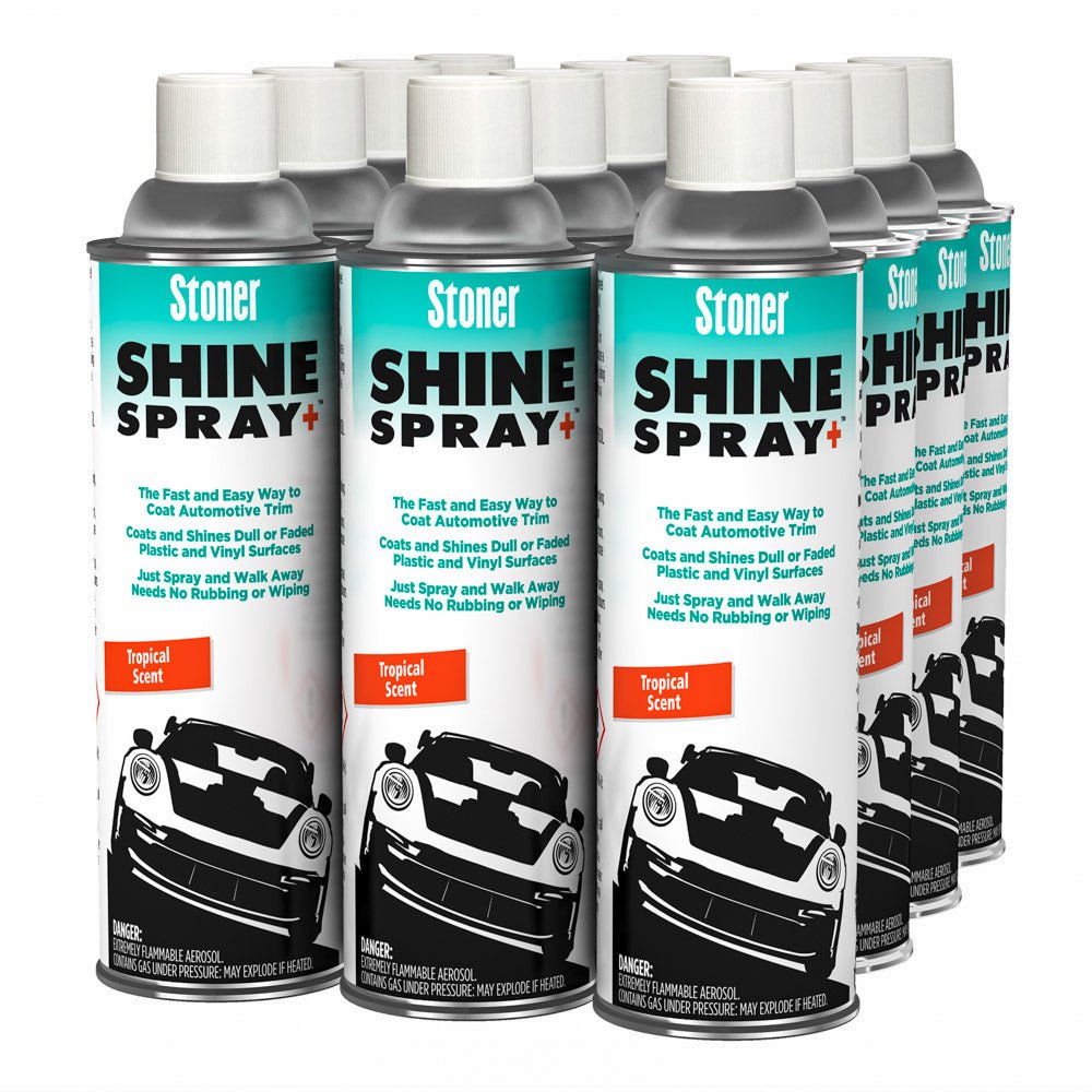 Bring back that like-new finish with Stoner Shine Spray+. This fast and easy trim dressing restores dull or faded vinyl, plastic, and leather with a rich, low-lustre shine that lasts, now with a fresh tropical scent. Simply spray and walk away for a smooth, even coating that never runs, drips, or streaks.