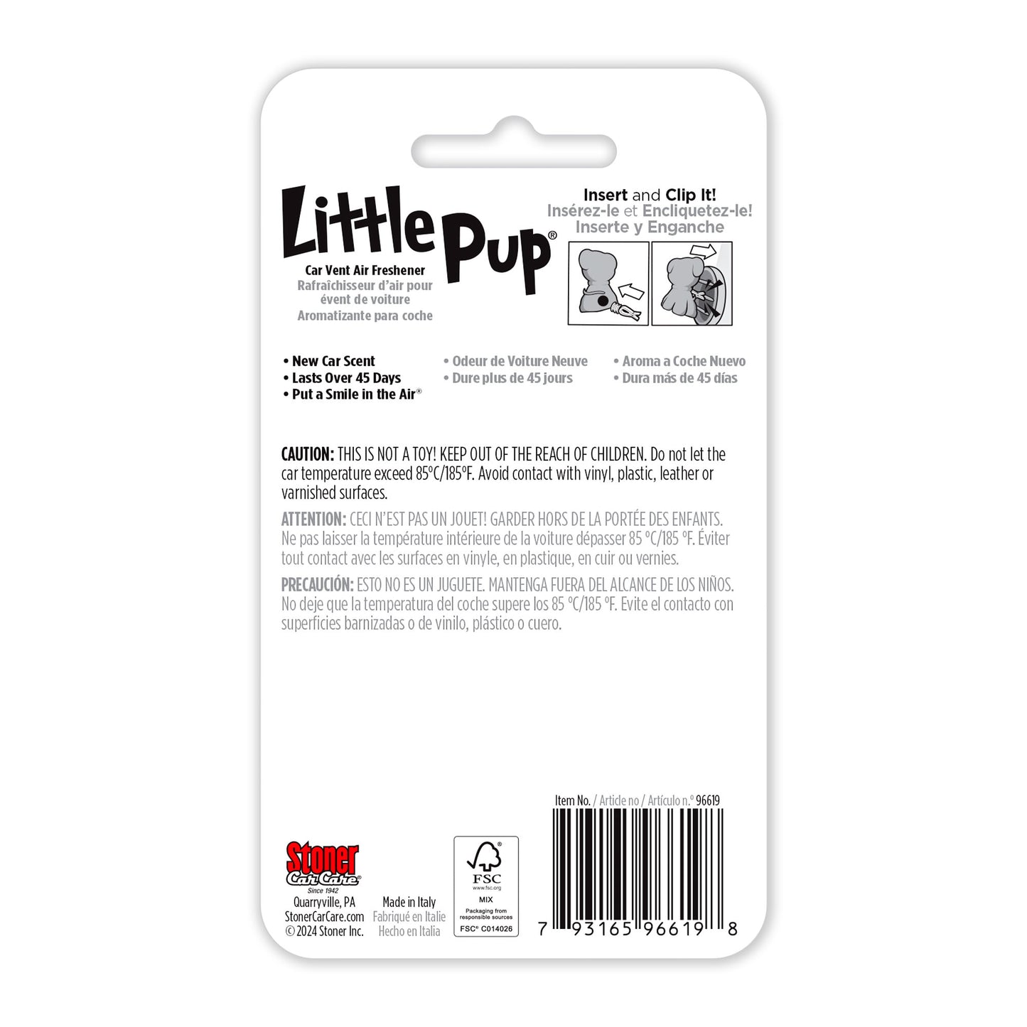 It can be challenging to keep your car smelling fresh through all your trips and treks. Stoner Car Care’s Little Pup air freshener is the solution, delivering the perfect amount of new car fragrance. Don’t let his size fool you – Little Pup packs a punch! Designed and produced in Italy in collaboration with world-renowned fragrance houses, Little Pup powers through odors to provide a breath of fresh air to your car’s cabin.